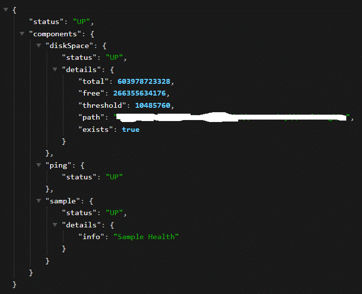 }向 “{url_to_project}/actuator/health” 發起調用,將會產生如下輸出: