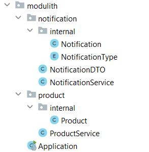 - Module 'product' depends on non-exposed type com.baeldung.modulith.notification.internal.Notification within module 'notification'!