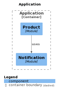 現在,讓我們來看一個包含 產品 和 通知 領域的簡單應用程序。在這個示例中,我們從 產品 模塊中調用一個服務,然後 產品 模塊調用 通知 模塊中的一個服務。