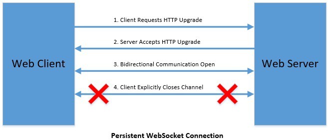 如正式定義所述,WebSocket 是一種具有雙向、全雙工通信功能的協議,它在持久的 TCP 連接上運行。 我們將逐步深入理解該聲明中的每個部分。