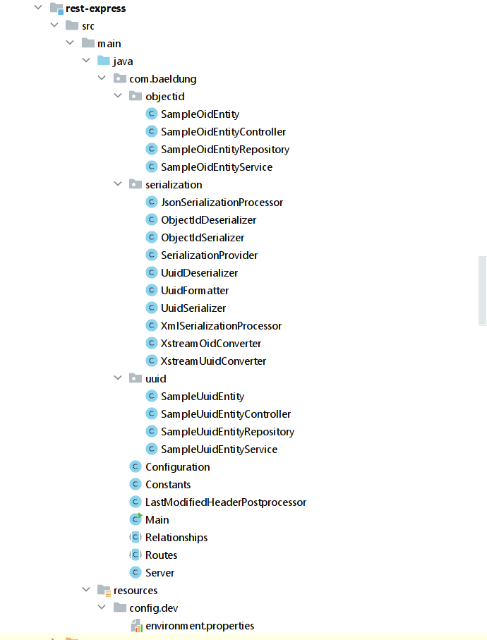 讓我們來探索生成的代碼。我們將重點關注主類、API 方法和 DB 層。這將幫助我們瞭解如何使用 RestExpress 創建一個簡單的 CRUD 應用程序。