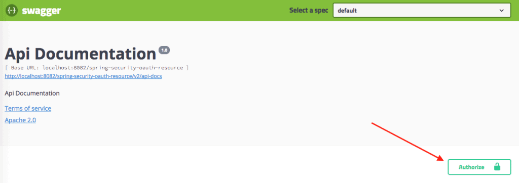 http://localhost:8082/spring-security-oauth-resource/swagger-ui.html如我們所見,由於我們的安全配置,現在存在一個新的授權按鈕。