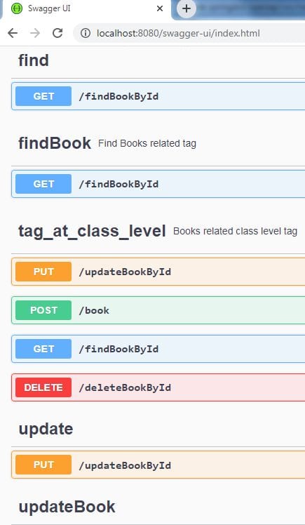 讓我們以書籍 API 為例,並在控制器類和其方法上指定標籤: