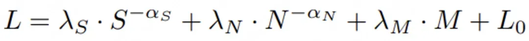 其中S表示學習率對訓練步數的積分(前向效應),M表示動量對訓練步數的積分(退火動量項),N代表模型規模。