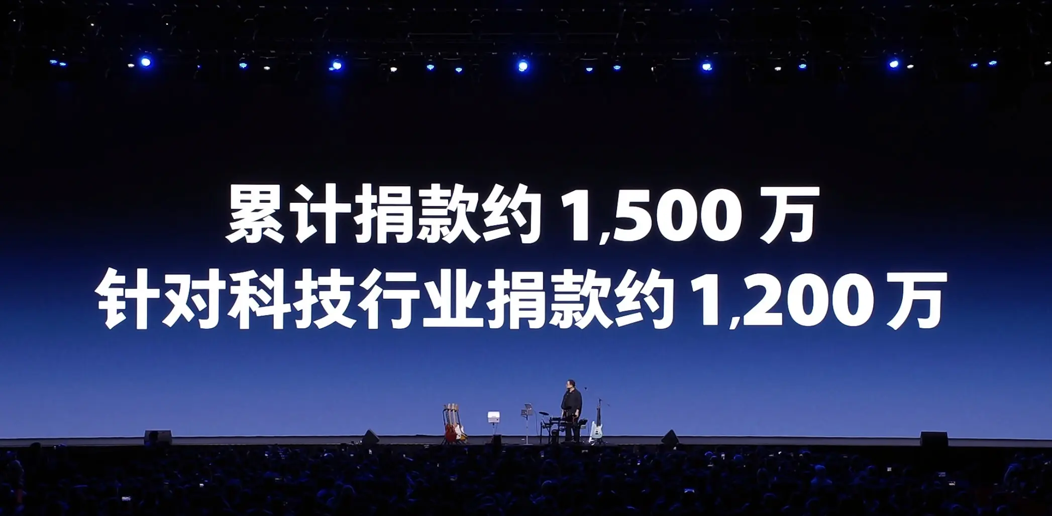 羅永浩還列出了歷年來舉辦活動門票收入的捐款情況,稱累計捐款約 1500 萬,針對科技行業捐款約 1200 萬。