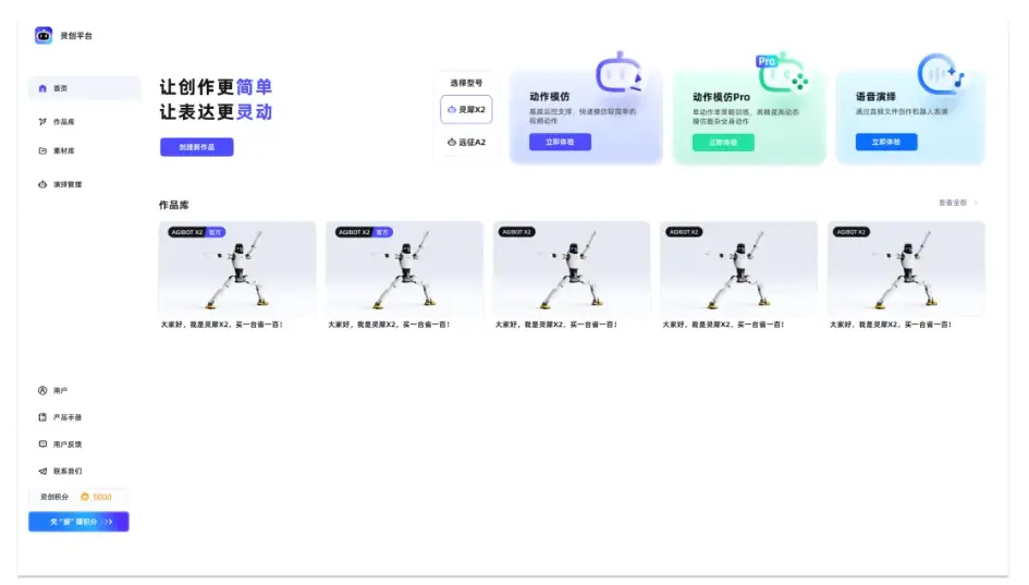“無需編程基礎、無需專業設備,只需上傳一段人類動作視頻,用户即可通過「靈創」平台實現從真人表演到機器人精準復刻的端到端轉化。從此,每個人都能成為機器人的“導演”和“編舞師”,輕鬆打造屬於自己的機器人表演作品。”