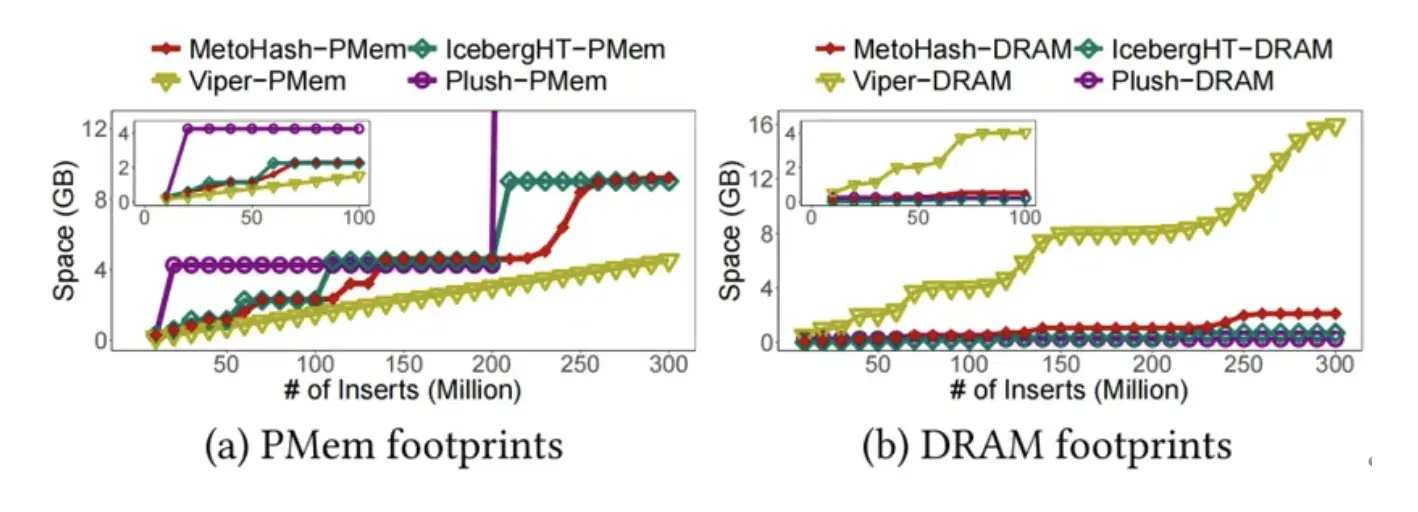 ③內存效率權衡:相比將全部索引存於 DRAM 的方案(如 VIPER),MetoHash 的 DRAM 佔用減少 86.7%;相比 PMem 利用率低的方案 (如 Plush),MetoHash 的 PMem 佔用減少 86.5%。