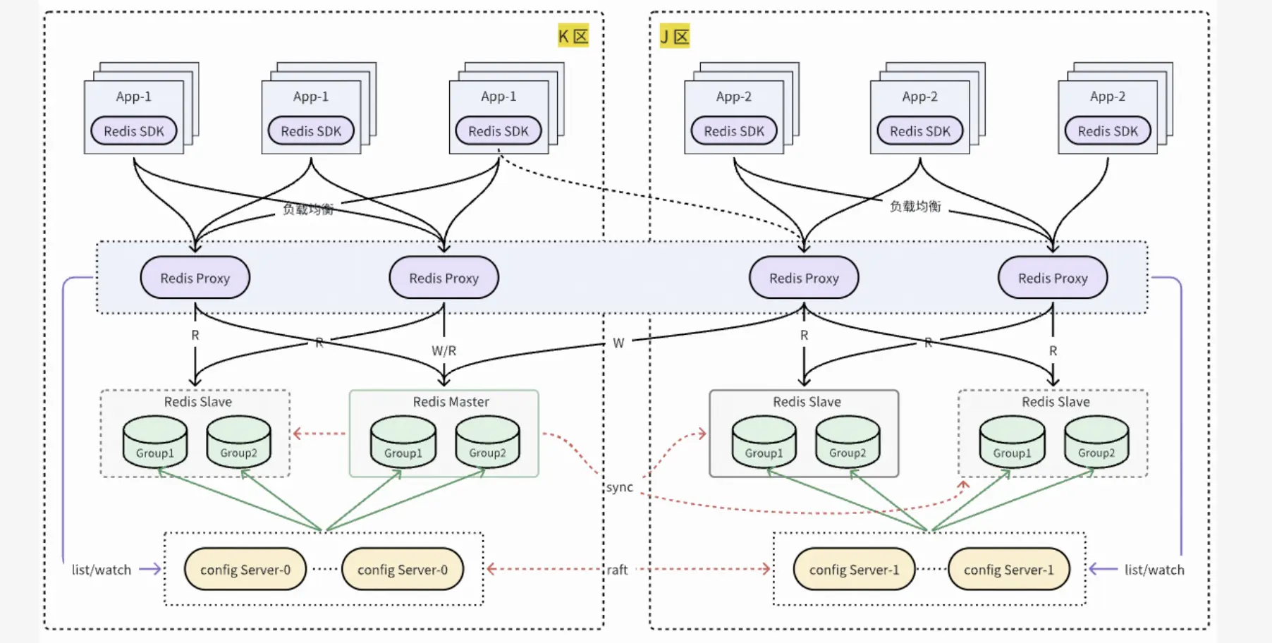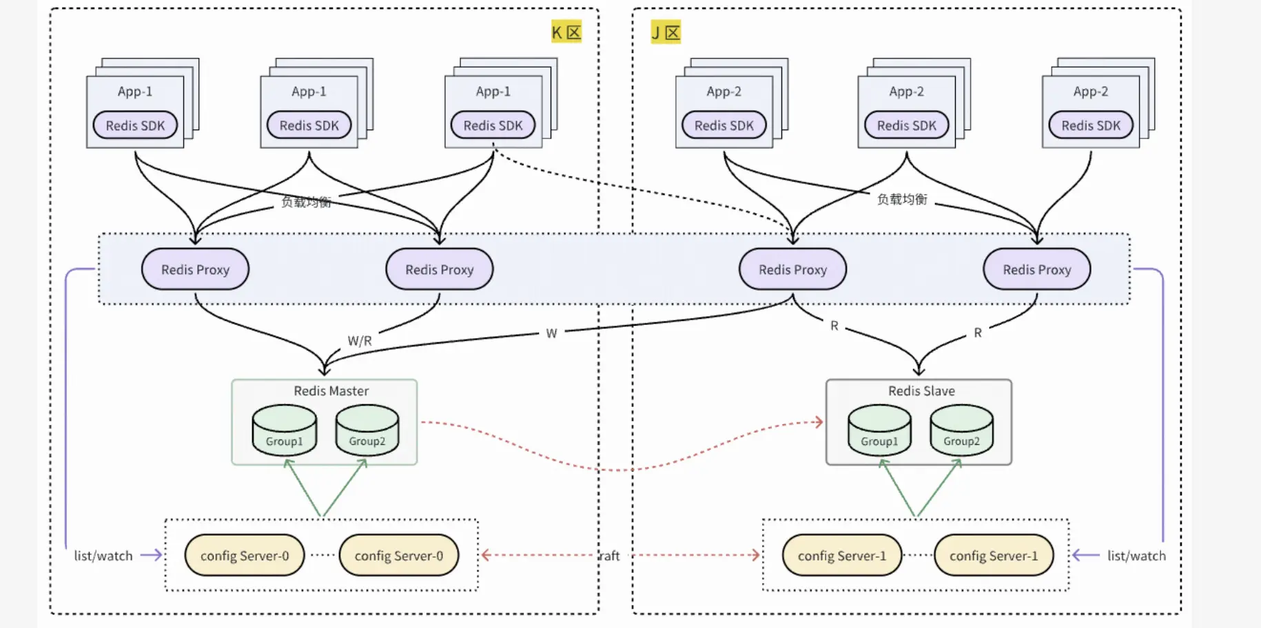 自建 Redis 同城雙活採用中心寫就近讀的方案實現,可以降低業務多區部署時訪問 Redis RT。