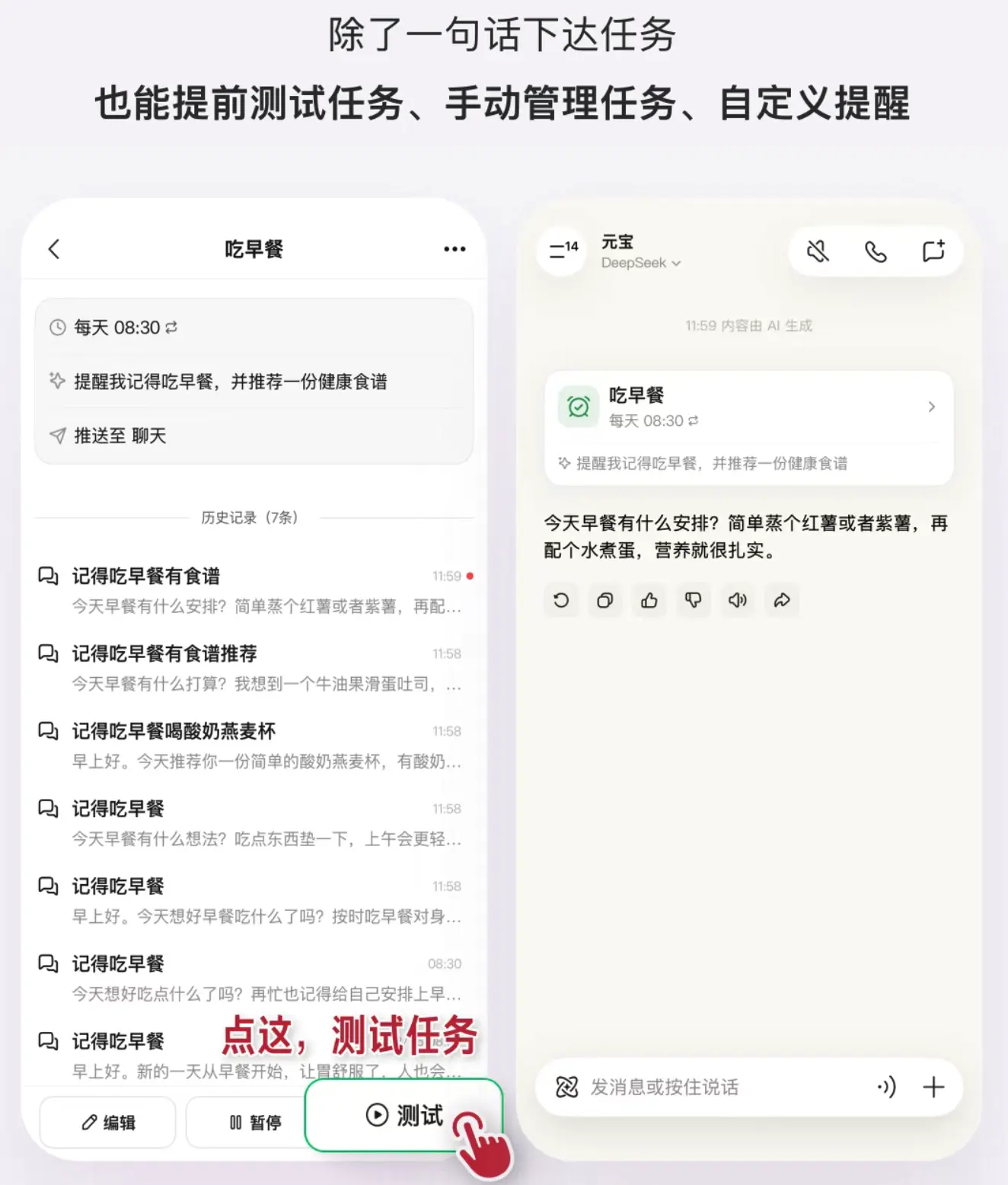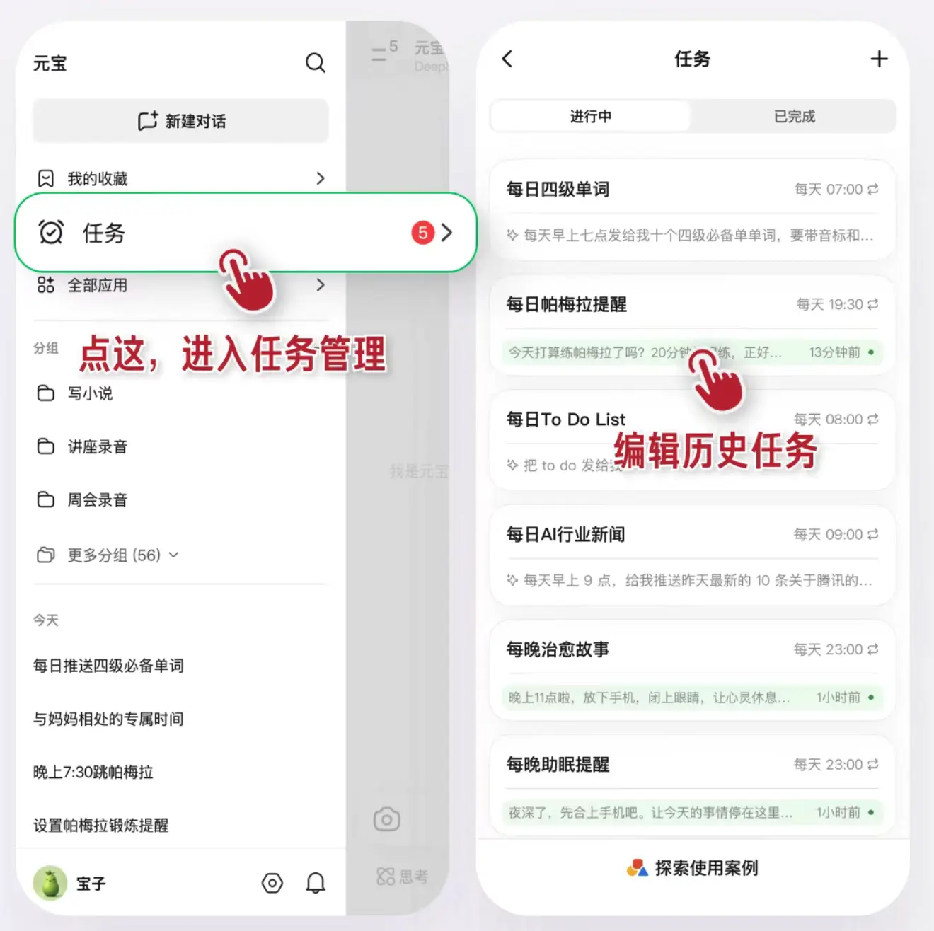 騰訊元寶正式宣佈推出任務功能,APP 及電腦版更新後,用户可通過一句話設置循環定時任務。 該功能覆蓋生活瑣事、習慣養成、職場工作、親子互動等多場景,包括寵物驅蟲提醒、睡前故事推送、週報撰寫輔助、行業新聞推送、待辦清單整理等。 除基礎提醒外,還提供延伸服務,如健康食譜推薦、助眠歌單分享、健身視頻教程查詢等,支持任務測試、手動管理與自定義設置,提醒後可繼續互動交流。 用户可按需設置每日、每週、每月循環任務,輕鬆打理日程安排與各類計劃。