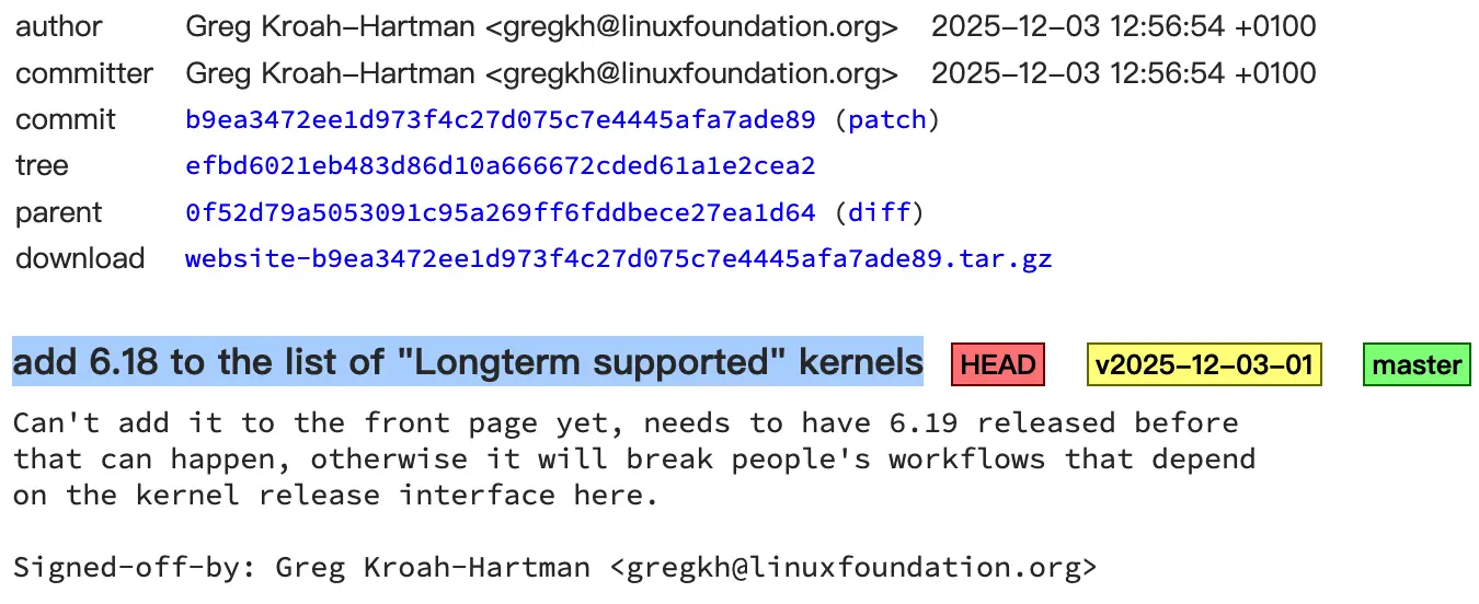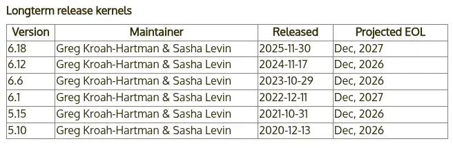 Linux 內核穩定分支首席維護者 Greg Kroah-Hartman 正式確認 Linux 6.18 成為長期支持(LTS)版本。