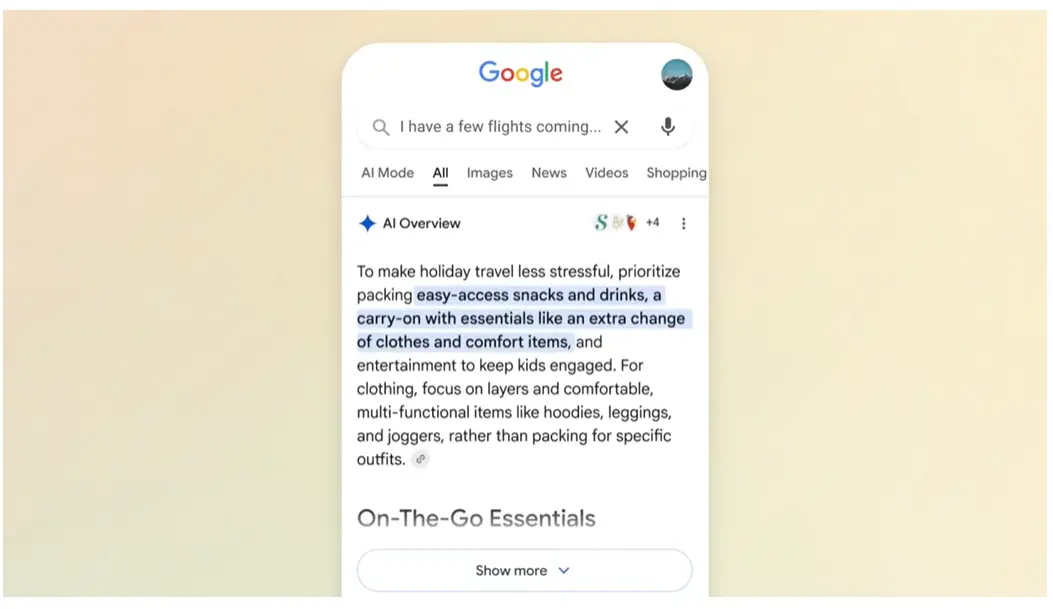 技術層面,AI模式採用“查詢扇出”機制:系統先將用户問題拆解為多個子主題,並行抓取知識圖譜、實時體育、財經及購物數據,再合成帶引用來源的完整答案;若用户繼續追問,模型將結合上下文與搜索歷史給出個性化回覆,對話長度可達傳統搜索的三倍。
