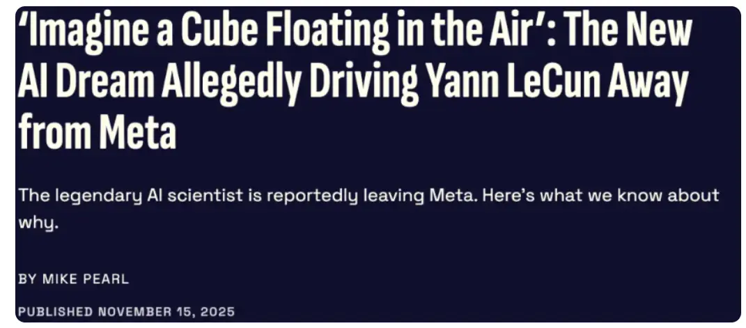 圖靈獎得主 Yann LeCun 與 Meta(前 Facebook)似乎走到了分岔口。作為 Meta 的首席 AI 科學家,LeCun 長期以來一直在推動基礎 AI 研究,但他近期發表的看法讓人驚訝,他認為當前流行的大語言模型(LLM)是一條 “死衚衕”,未來應當着眼於 “世界模型”。