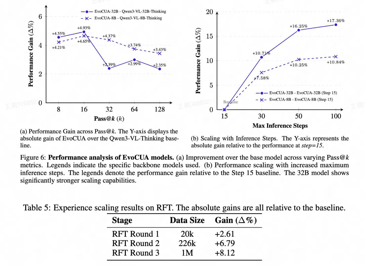 我們進一步驗證了 EvoCUA 的 Scaling Law。
