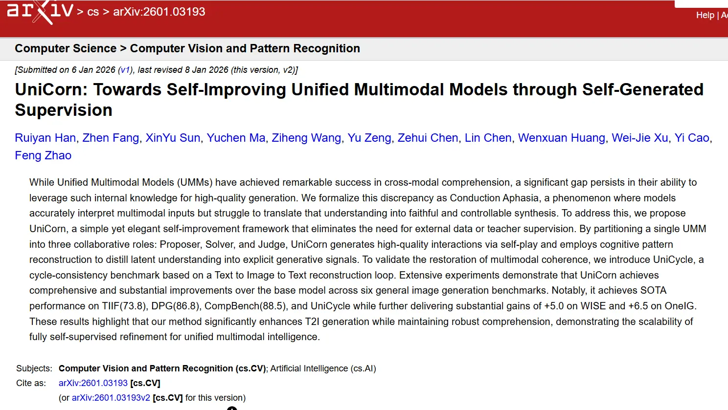 中國科學技術大學及國內多家高校的科研團隊近期發佈了一項名為“UniCorn”的新型技術框架。該框架的核心目標是賦予自動化圖像處理系統一種特殊能力:識別並修復其在生成內容過程中的自身缺陷。