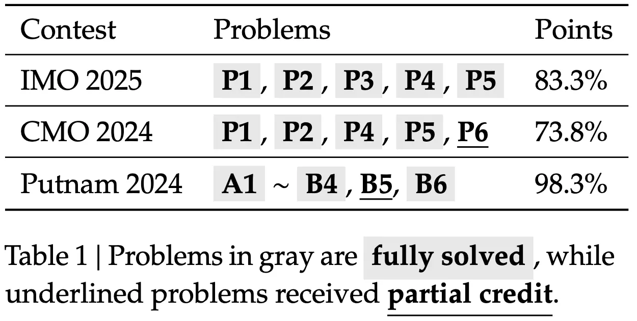 - IMO 2025:解決5題(83.3%準確率),達金牌水平;