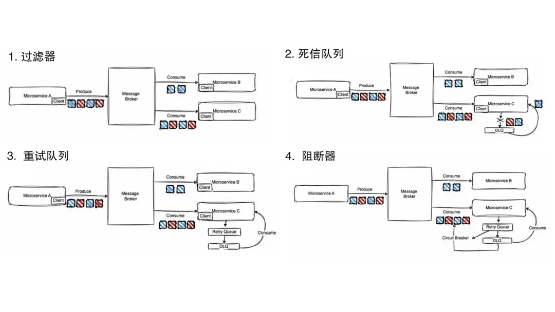 現在的微服務都會圍繞消息代理構建多種多樣的服務,以滿足其端到端的需求。而簡單的消息隊列,無法滿足這類多樣化的需求。複雜點的業務都需要考慮失敗管理。