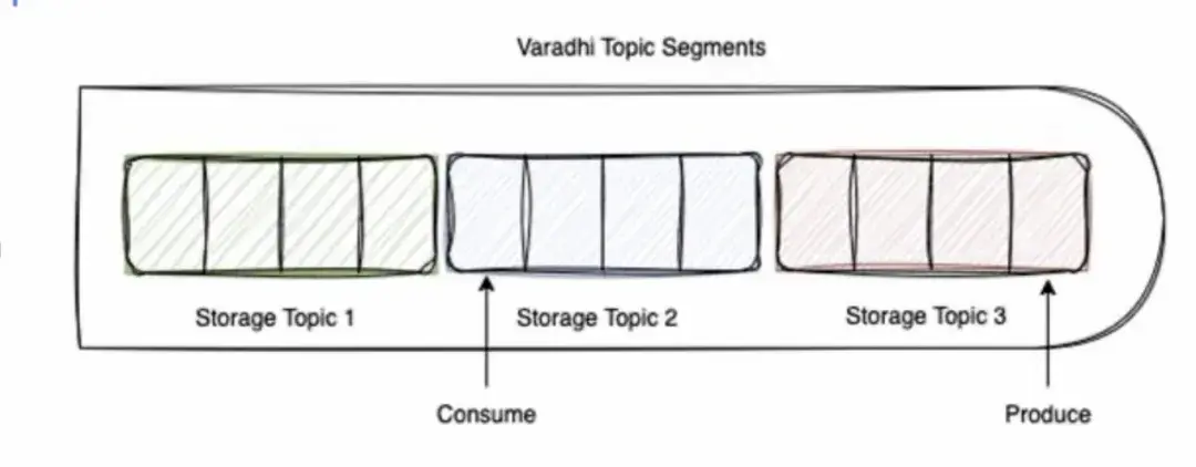 - 現在一個Varadhi主題可以接入多種存儲主題,並且有一個指針指示我們應該生產到哪個主題。