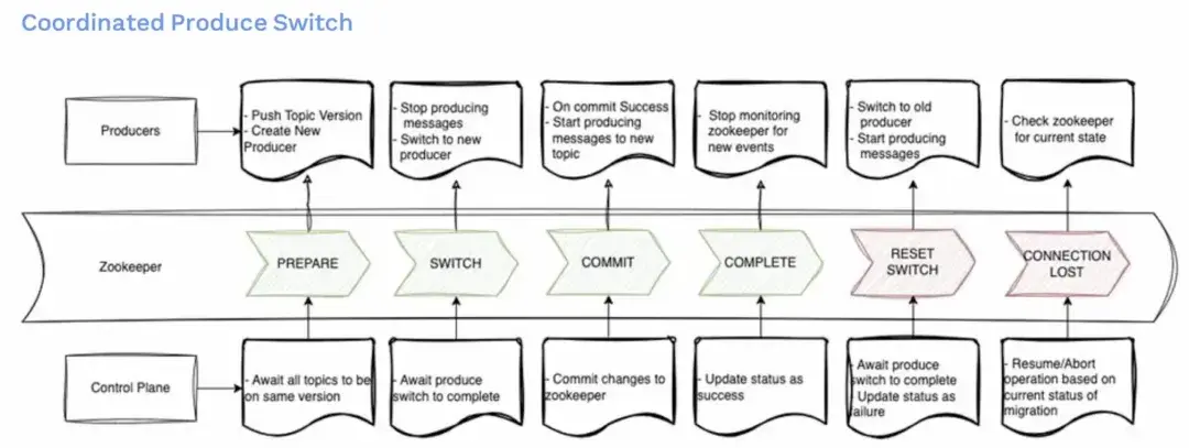 - 接下來將來到完成階段。控制平面將狀態更新為成功,生產者將停止監控Zookeeper。