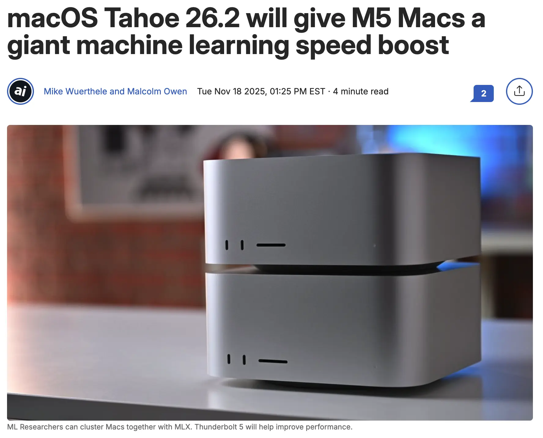 據 Apple Insider 報道,蘋果即將發佈的 macOS Tahoe 26.2 將為 M5 系列 Mac 帶來顯著的機器學習性能增強,核心升級源於對自研開源 ML 框架 MLX 的強化。