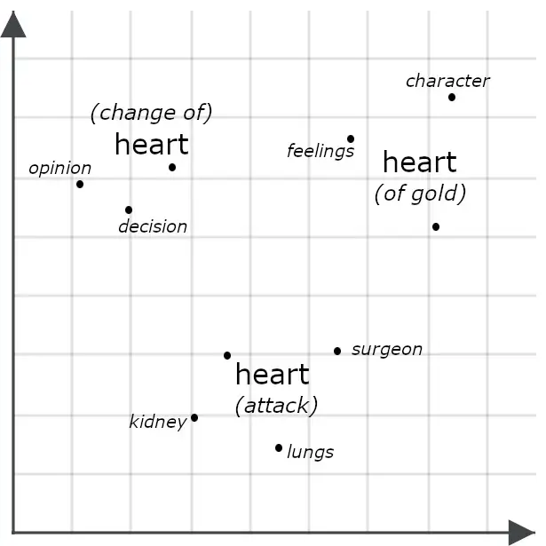 表面上看,它們非常相似,但多向量模型很可能為每個 “ heart ” 的實例生成不同的嵌入,表示它在整個句子上下文中的不同含義: