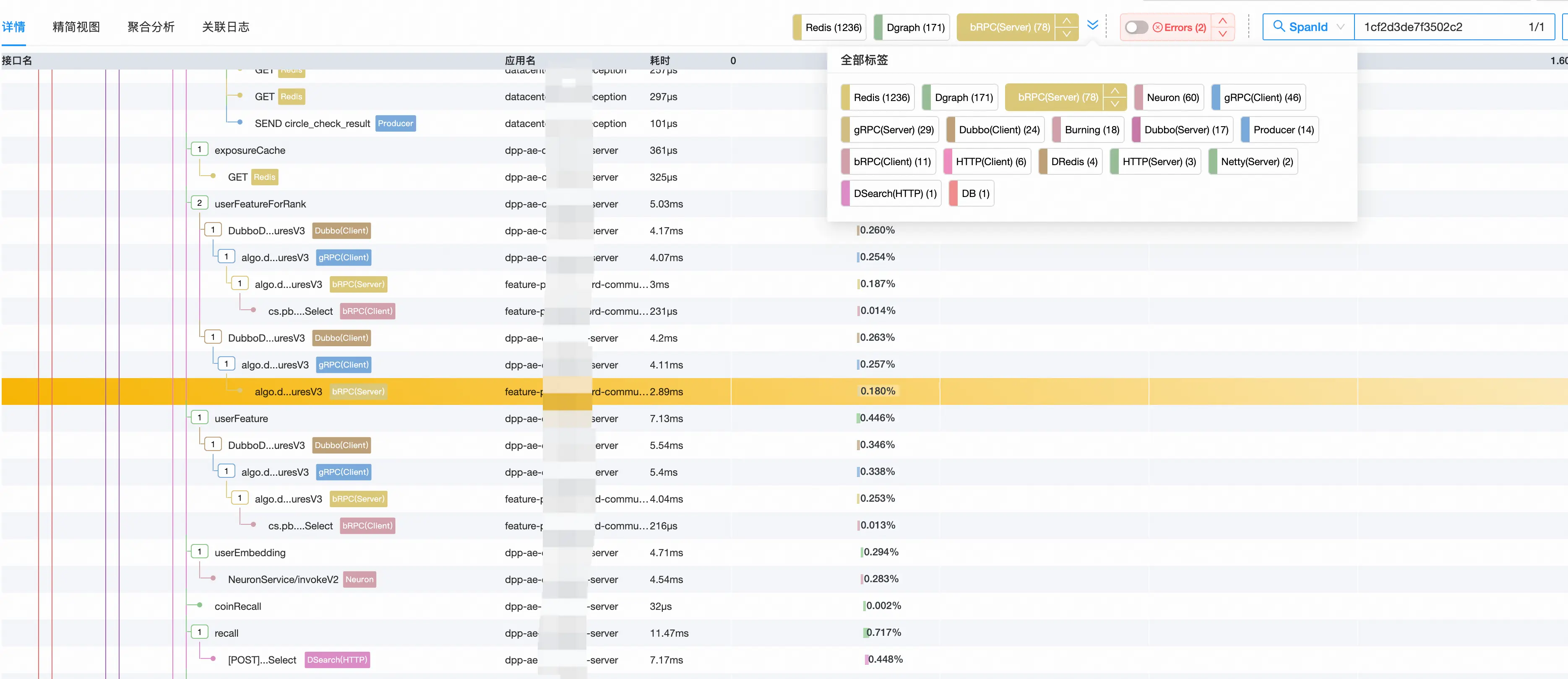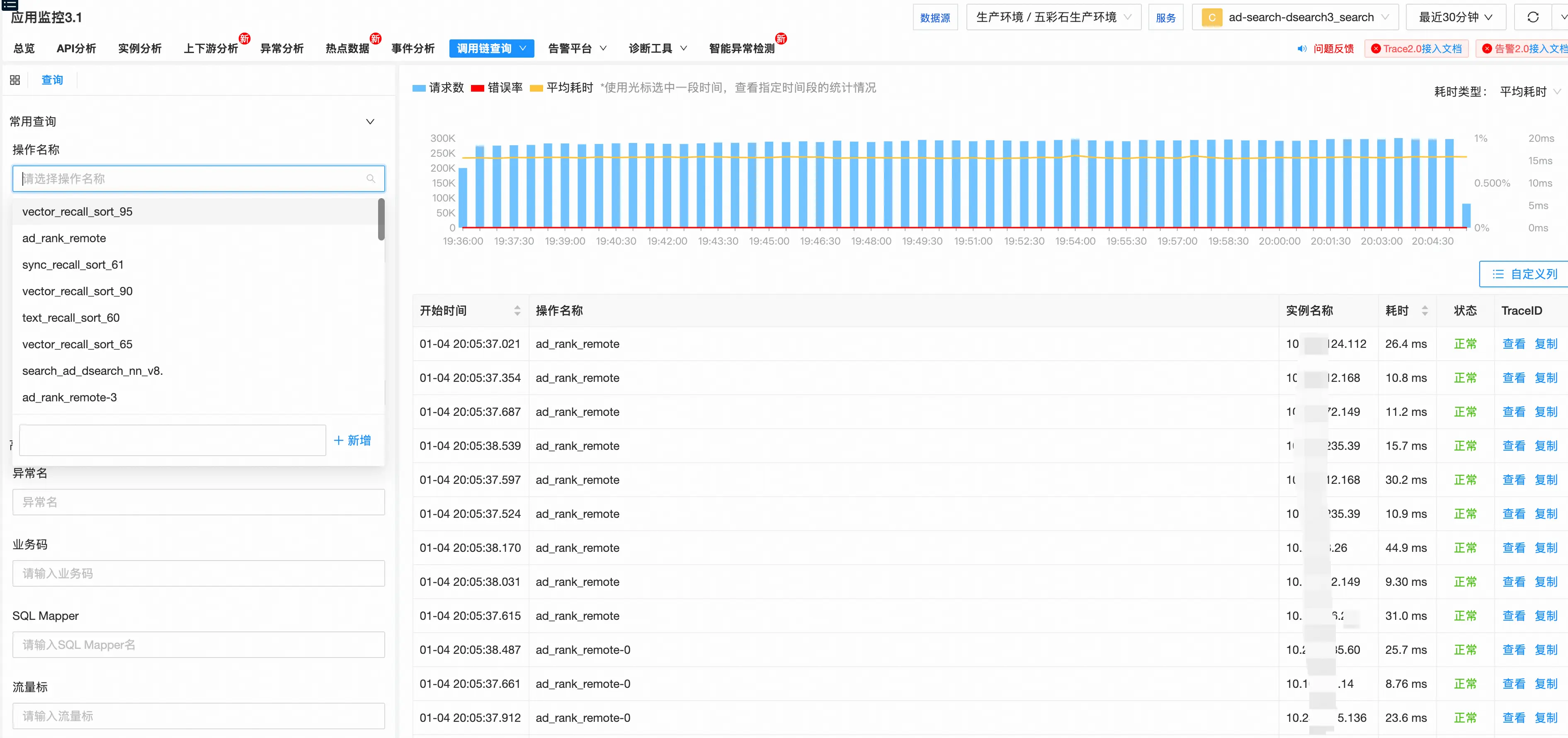- 支持指標維度(異常,RT範圍等)的鏈路查詢。