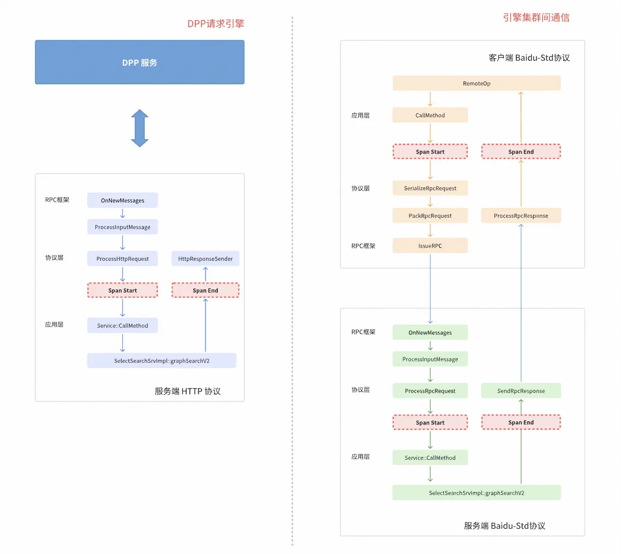 RPC 探針實現了在協議層對請求生命週期的統一感知與Trace自動化處理,支持BRpc客户端與服務端在無業務侵入的前提下完成Trace的自動採樣與上報。
