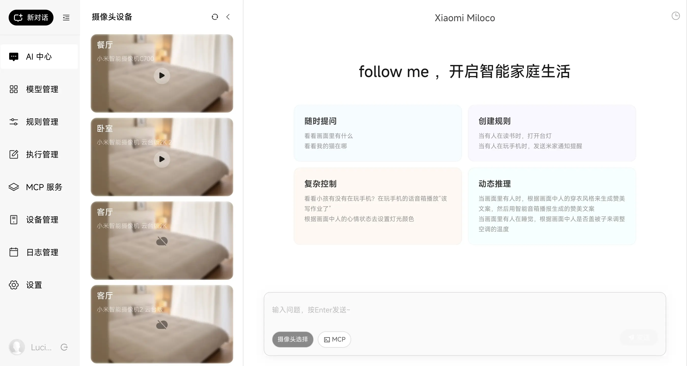 該方案以米家攝像機為視覺信息來源,以自研大模型為核心,打通全屋 loT 設備。基於大模型的開發範式,讓用户能夠以自然語言定義家庭的各種需求和規則,實現更廣泛、更具創意的智能聯動。