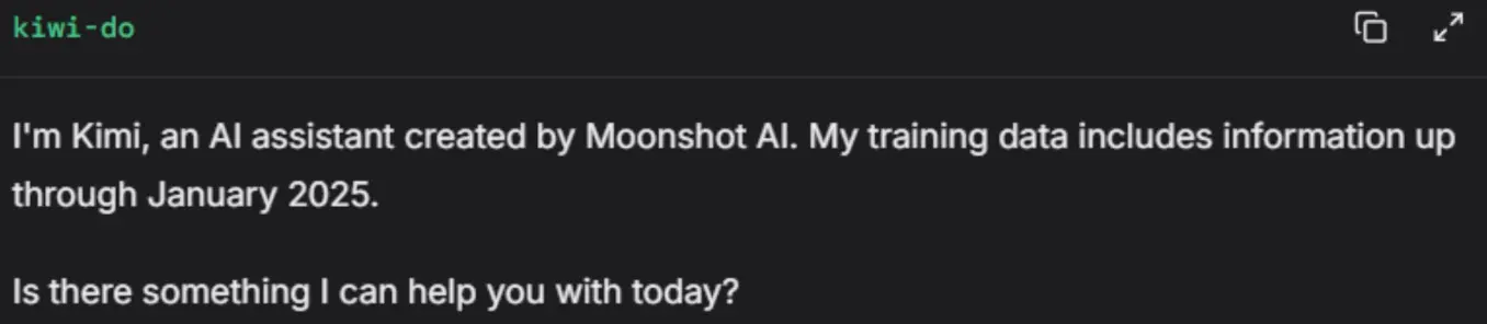一名博主稱在 LmArena 上發現了一個名為“Kiwi-do”的新模型,當被問到它是誰時,Kiwi-do 自稱來自月之暗面,訓練數據截止至 2025 年 1 月,並在測試中表現突出,尤其在視覺物理推理測試(VPCT)中輕鬆通過,被推測為 Kimi 正在研發的多模態模型 K2-VL。