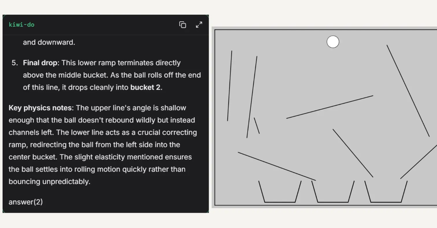此外,Kiwi-do 成功攻克高難度 VPCT 測試,展示強大的多模態能力(視覺理解 + 物理推理),可能應用於文檔解析、儀表盤分析等商業場景。