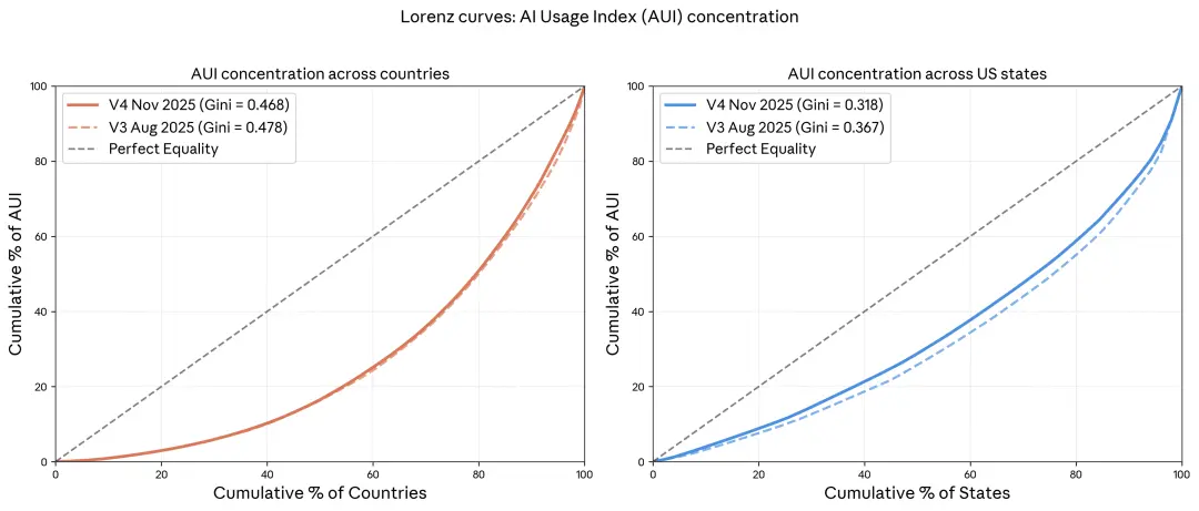 這份報告使用 2025 年 11 月的數據(Claude.ai 用户對話 & 企業 API 調用),引入了一套新的指標“經濟原語(economic primitives)”,以更深入地理解 AI 使用方式及其對經濟的影響。