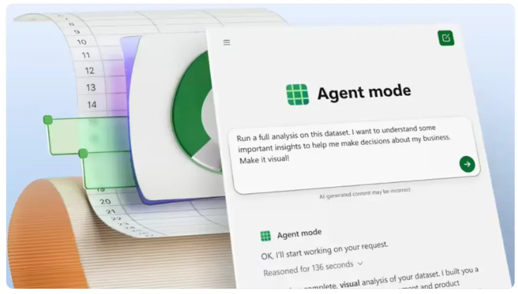 微軟發佈了一項更新,宣佈網頁版 Excel 推出全新的 “智能體模式”(Agent Mode),此功能主要面向 Microsoft365Copilot 商業用户及 Premium 訂閲者。微軟表示,這次升級標誌着 Excel 智能化進程的一次重大飛躍,AI 助手將不再僅限於簡單的問答,而是能夠像真正的數字助手一樣,深入參與複雜的表格處理過程。