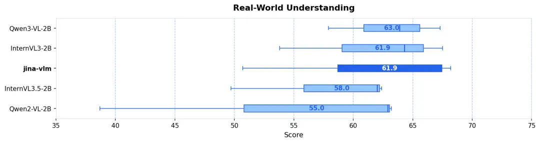 據介紹,在標準的 VQA 任務、多語言多模態理解(MMMB、MMBench),還是在 OCR 和純文本任務上,Jina-VLM 都是同規格模型裏最優級別的表現,且同時具備在消費級硬件友好的推理效率。