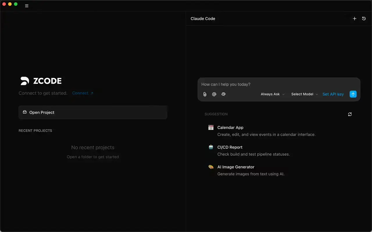 智譜發佈了一款輕量級 AI 代碼編輯器:Z Code,目前處於 Alpha 階段,支持 Mac 和 Windows 平台。