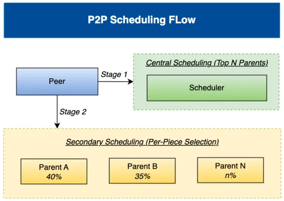 調度算法升級為一種兩階段調度算法,結合中央調度與節點級二次調度,基於實時負載感知來優化 P2P 下載性能。