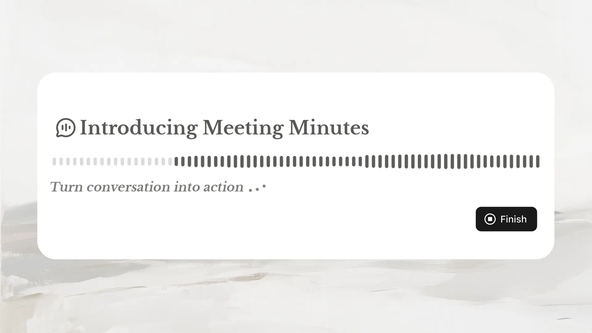 Meeting Minutes 讓您能夠無縫捕捉、理解並執行您的對話內容。它彌合了言語與行動之間的差距,將您的討論轉化為即時、切實的成果。