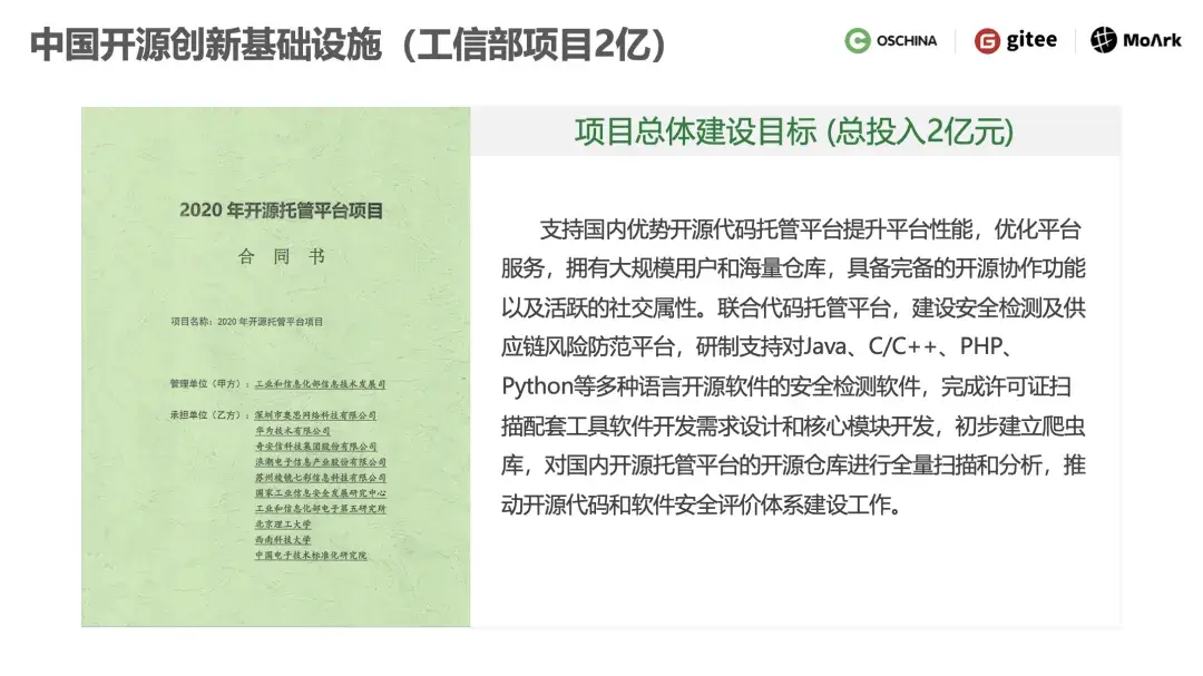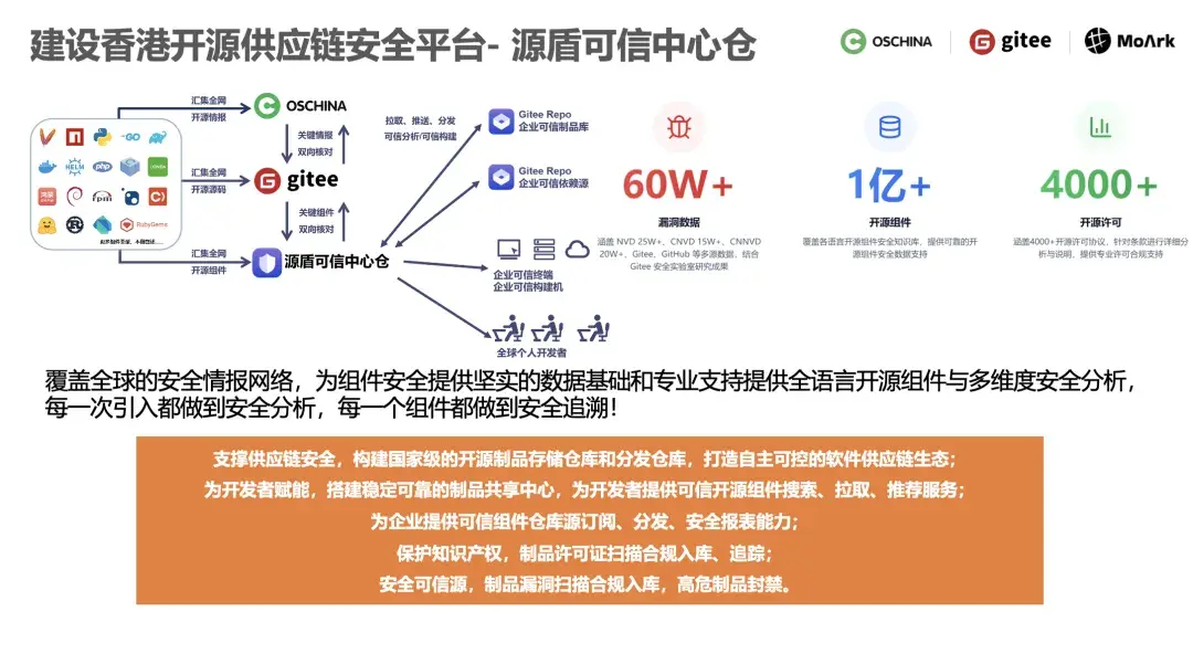 同時,Gitee 正牽頭承擔工信部總投入 2 億元的「中國開源創新基礎設施」項目,聚焦 Java/C++/Python 等多語言的漏洞掃描、許可證合規、爬蟲全量分析等能力建設,逐步形成本土可信開源協作生態。