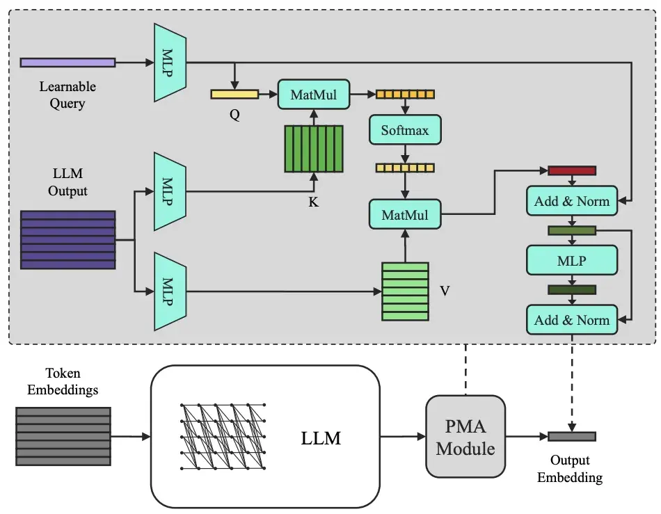 為了解決這個難題,我們為 C2LLM 引入了一個輕量而強大的模塊——**注意力池化 (PMA, Pooling by Multihead Attention) **。