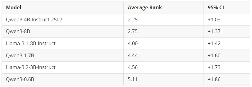 冠軍:Qwen3-4B-Instruct-2507(平均排名:2.25)