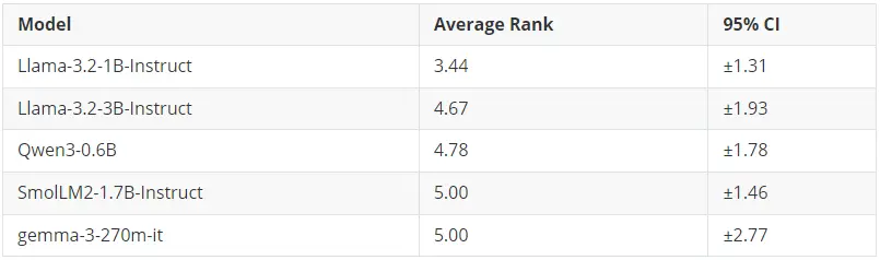 冠軍: Llama-3.2-1B-Instruct(平均排名:3.44)