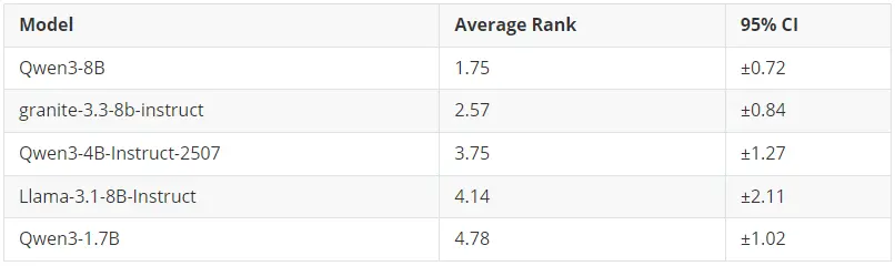 冠軍: Qwen3-8B (平均排名: 1.75)