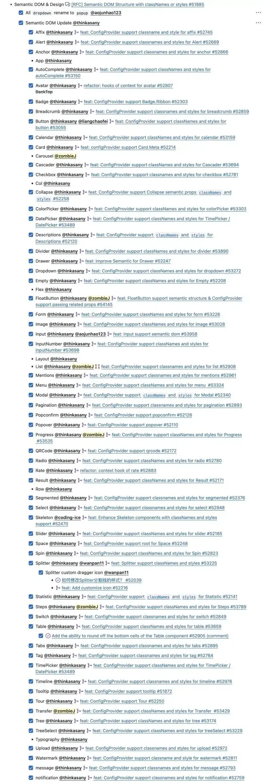 - Ant Design v6 tasks[#52115](javascript:;) (https://github.com/ant-design/ant-design/issues/52115)