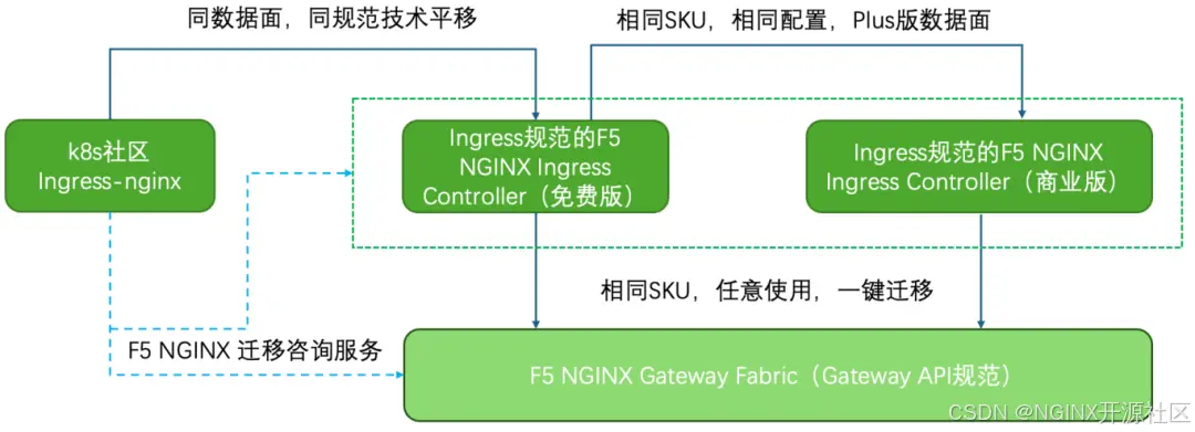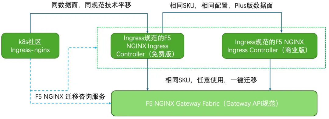 通過上述分析,我們可以意識到,這將不是一個簡單的平移還是戰略重構的二選一,從實際安全生產運維角度,如果您當前正在使用 Ingress 規範,我們將建議您首先採用同數據面技術、同規範的平移,在應用遷移穩定後再考慮引入最新的 Gateway API 規範。F5 NGINX Ingress Controller 是 NGINX 的原廠產品,是 Ingress-NGINX 遷移的最佳同數據面方案,並可以有效保證產品的後續延續性。您可以參考上述提到的遷移路徑,可以順滑的繼續採用開源免費方案,也可以通過採用商業產品方案獲得更多高級特性以及服務支持。而如果您正處於沒有包袱的起始階段,我們將建議您站在全局基礎架構流量的角度重新考慮 Kubernetes 入口流量的設計,將其從架構性的角度引入,而不是僅僅為了面向開發人員進行簡單業務發佈的方式,您可以充分評估 F5 CIS 方案以及支持 Gateway API 規範的 F5 BIG-IP Next For Kubernetes(BNK)方案。