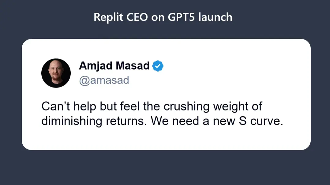 使用 AI 編程工具的開發者們明顯感到了失望。基於 OpenAI 模型構建 AI 編程工具的公司(如 Cursor、Replit)曾押下數十億美元,賭定每次模型發佈都會帶來指數級的進步。GPT-5 卻打破了這一預期,而這本不該發生。從 GPT-3 笨拙的算術能力,到 GPT-4 生成連貫代碼的能力,進步似乎勢不可擋。整個行業正是建立在對持續進步的預期之上。但在過去一年裏,這種進步明顯停滯了。