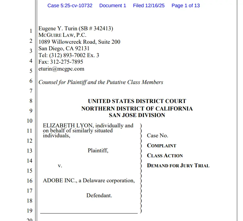 俄勒岡州作家伊麗莎白·萊昂(Elizabeth Lyon)對Adobe提起集體訴訟,指控其在訓練名為 SlimLM 的小型語言模型時,使用了包含其盜版作品在內的非法數據集。