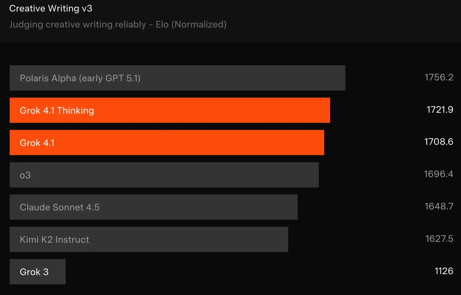 在“創意寫作”評測(Creative Writing v3 benchmark)中也展現提升,其語言更具“角色感”、更具情感和敍事張力。