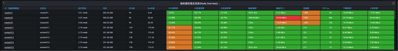 為了更好地管理系統資源,我們在 K8s 上搭建了資源監控平台。當前系統由大約 60 台 Linux 機器和若干 Windows 機器組成,負責渲染和數據處理任務。我們對讀取穩定性進行了監控,結果顯示,即使是多台異構服務器同時進行讀取操作,整個系統的 I/O 性能依然非常穩定,基本能夠充分利用帶寬資源。