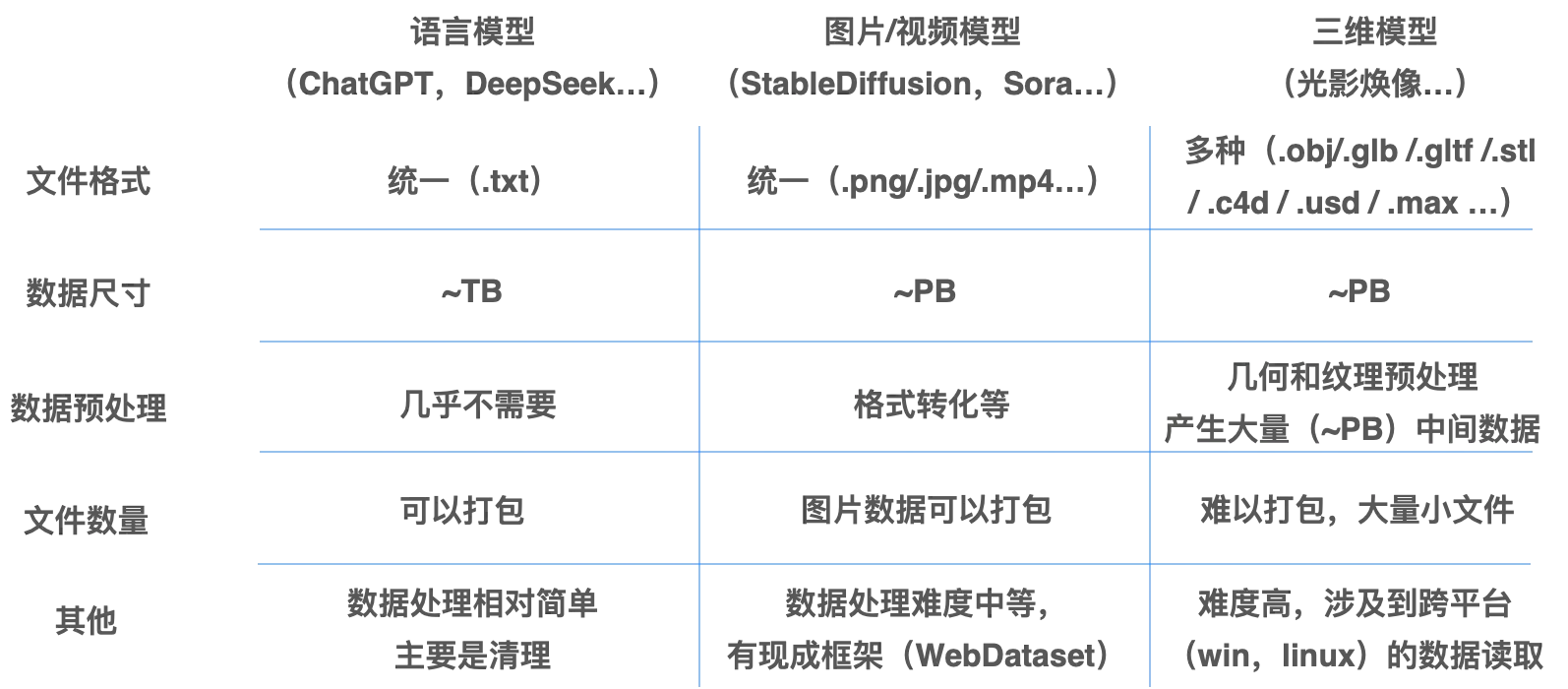 方便擴容:無論是語言模型、圖片/視頻模型,還是三維模型,擴容需求始終存在,尤其是三維模型的存儲和處理對擴容的需求更高。
