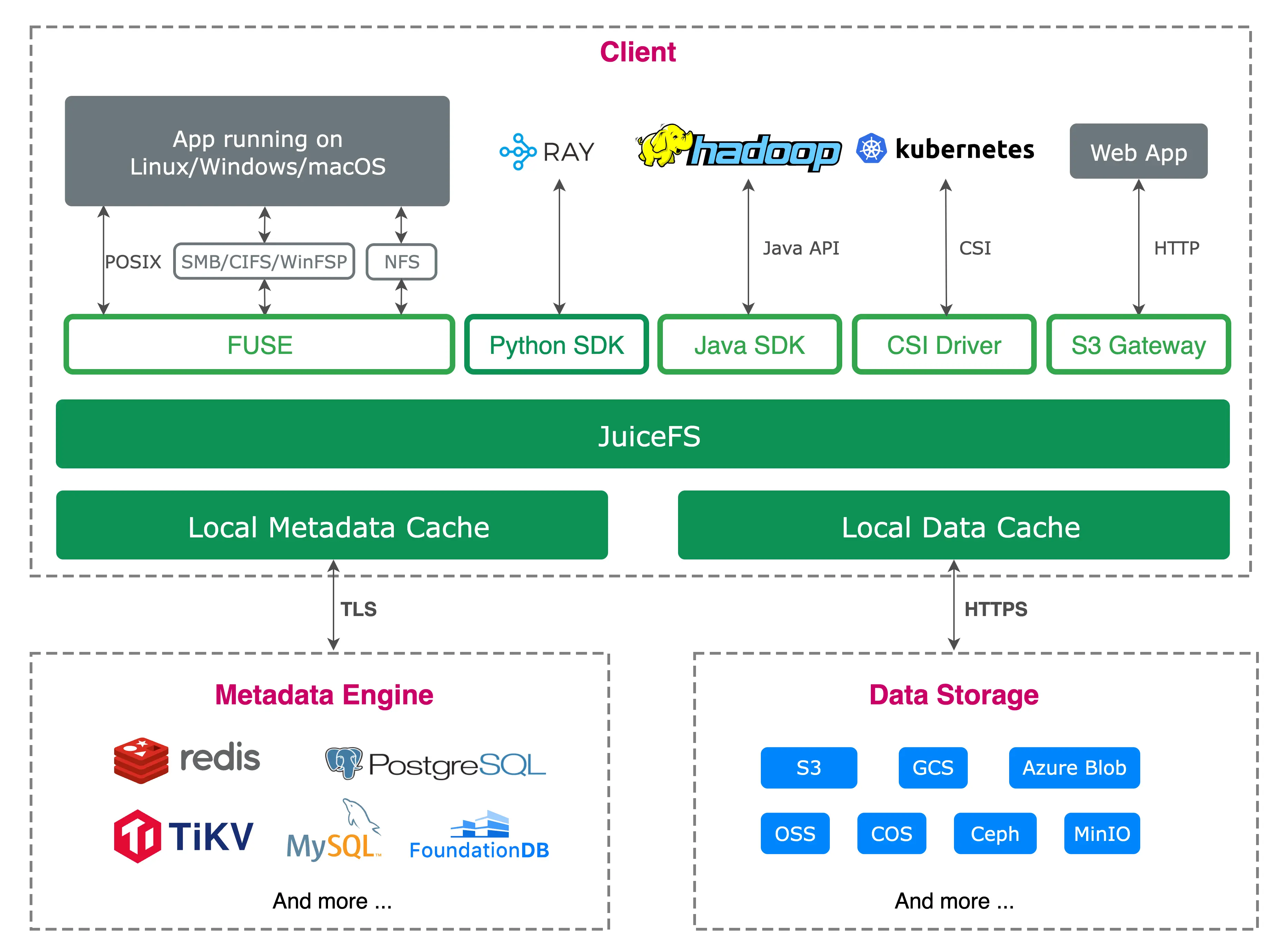 JuiceFS 有兩個原生自帶的特性非常符合我們的需求。首先是客户端數據緩存功能。對於我們的模型訓練集羣,通常會配備高性能的 NVMe 存儲。如果能夠充分利用客户端的緩存,便能顯著加速模型訓練,並減少對 JuiceFS 存儲的壓力。