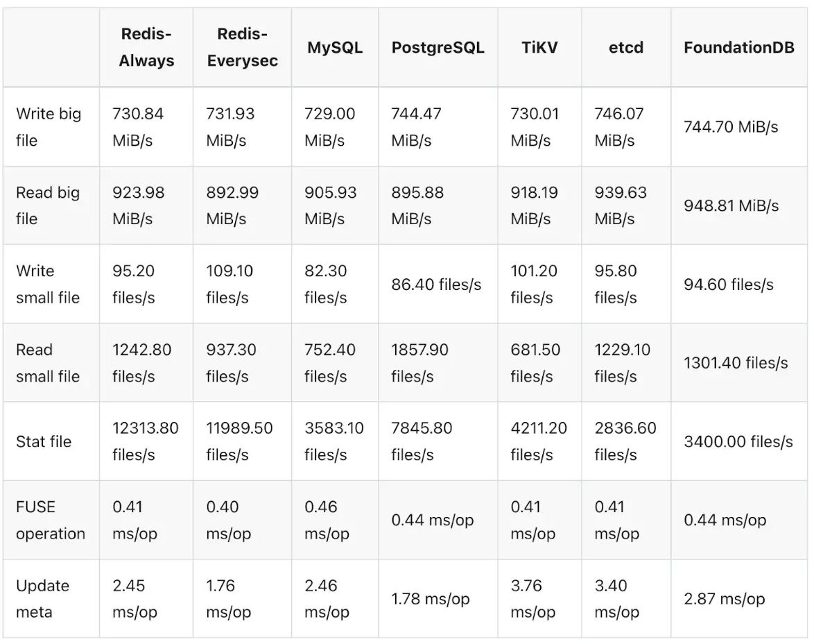 JuiceFS 採用的是元數據與數據分離的架構,有多種元數據引擎可供選擇。我們首先快速驗證了 Redis 存儲方案,官方提供了詳細的文檔支持。Redis 的優勢在於其輕量化,配置過程通常只需一天或半天時間,數據遷移也相對順利。然而,當小文件數量超過 1 億時,Redis 的速度和性能會顯著下降。