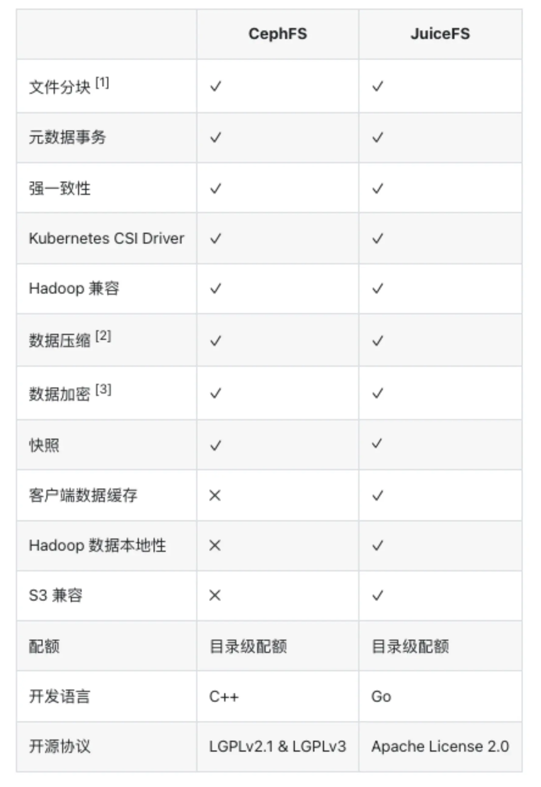 隨着存儲需求的增加,我們決定轉向可持續性更好的方案。在評估了多種方案後,我們主要對比了 CephFS 和 JuiceFS。雖然 Ceph 被廣泛使用,但通過自己的實踐和對比文檔,我們發現 Ceph 的運維和管理成本非常高,尤其對於我們這樣的小團隊來説,處理這些複雜的運維任務顯得尤為困難。